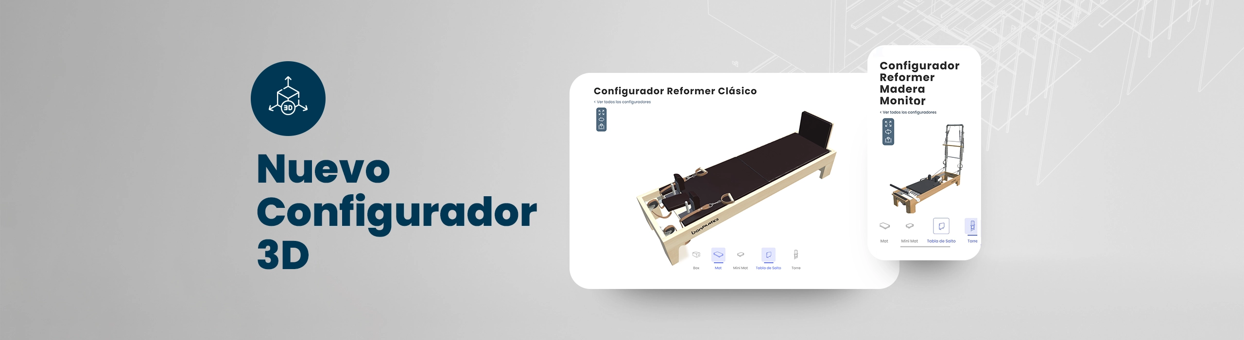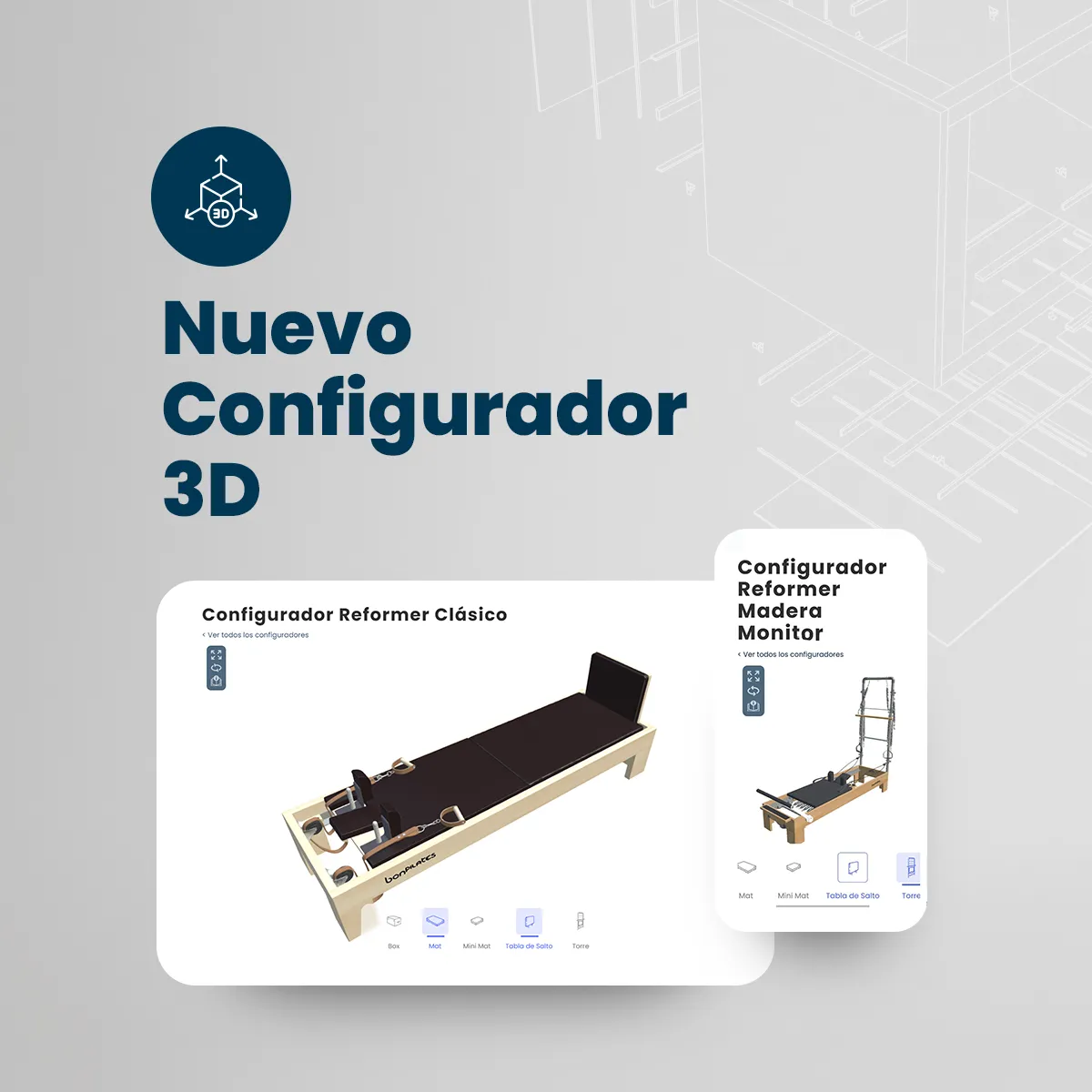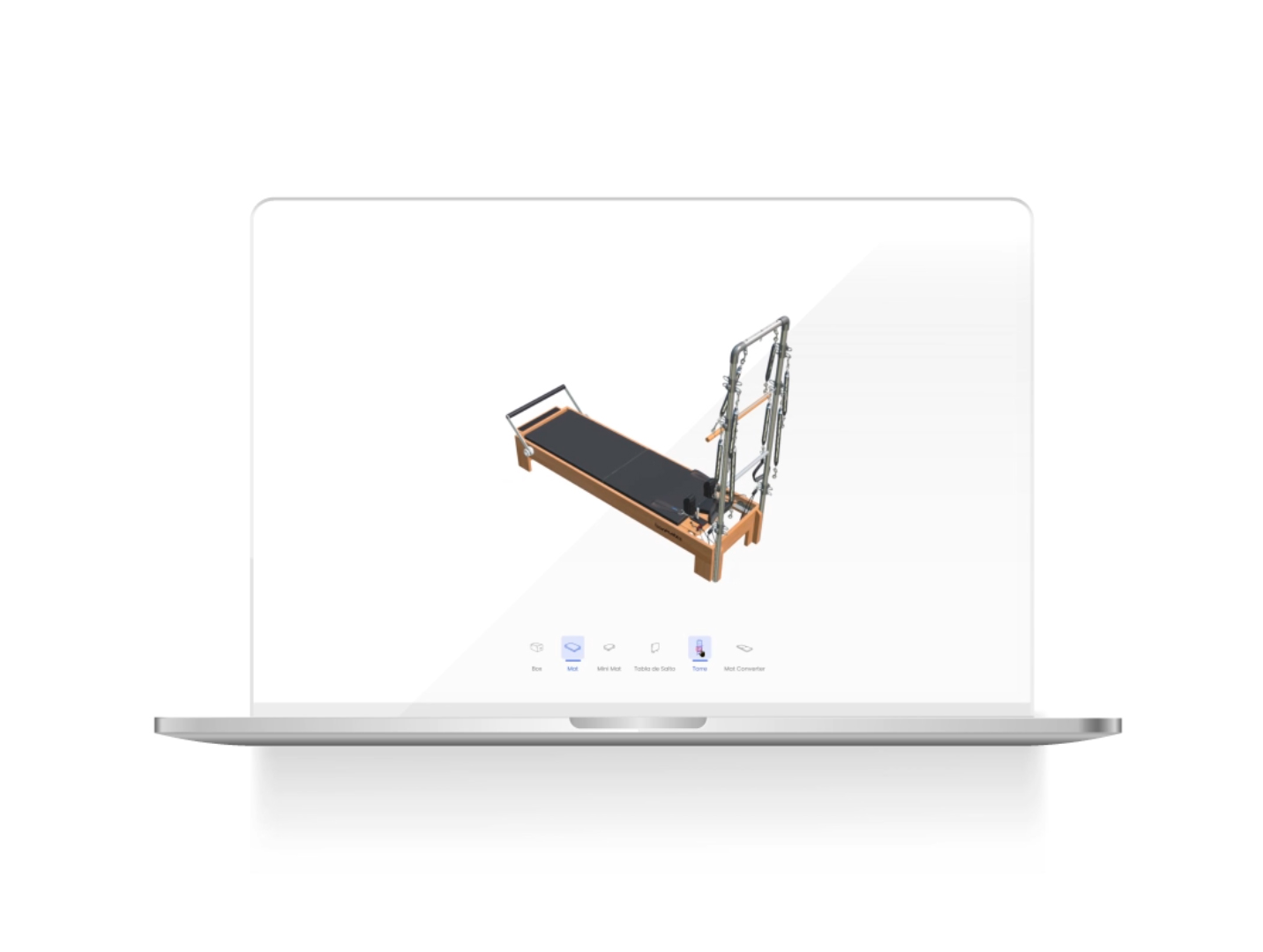 Desde Bonpilates ponemos a tu disposición nuestra nueva interfaz para que puedas configurar tu máquina de pilates según tus necesidades y ver el resultado en tiempo real. Con el nuevo configurador en 3D podrás añadir, configurar y observar el resultado en 360º.