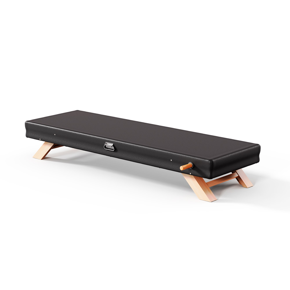 Classic mat with folding beech wood legs that are hidden inside the mat. The mat’s height while standing is same as a reformer. Feet strap, pole and handles are included.