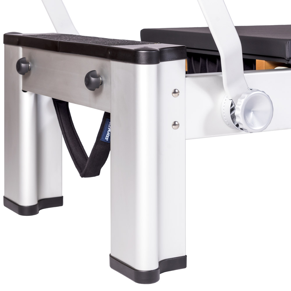 El Reformer aluminio monitor tiene una estructura de aluminio, que le otorga una combinación perfecta entre estabilidad, seguridad y ligereza. Estas características permiten poder disfrutar de toda la funcionalidad de un Reformer al tiempo que facilita el desplazamiento de la máquina por una sola persona, gracias a su diseño ligero y su sistema de ruedas.
